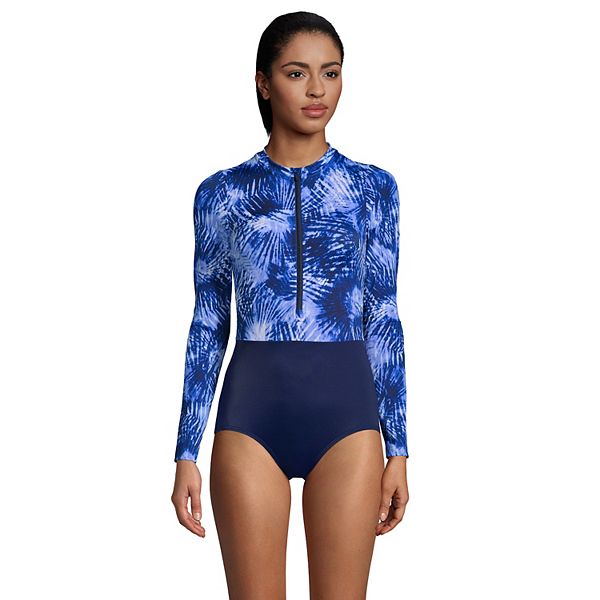 Women S Lands End Tugless Mastectomy Upf 50 Zip Front Sporty One Piece Swimsuit