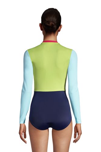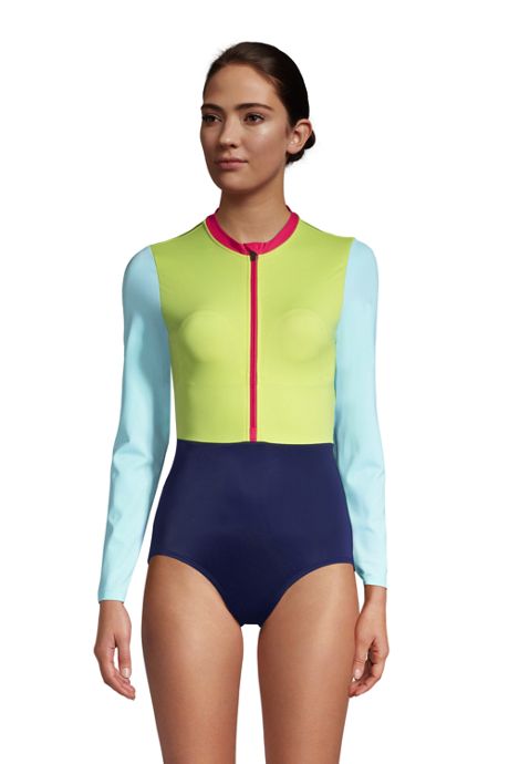 Women S Chlorine Resistant Zip Front Long Sleeve Tugless Sporty One Piece Swimsuit One Piece Swimsuits Sporty Swimsuits Women S Swimsuits Chlorine Resistant Bathing Suits Travel Swimsuits