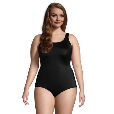 Lands End Womens Chlorine Resistant Tugless Tank Shelf Bra One Piece Swimsuit Black Long Torso 14 Walmart Com